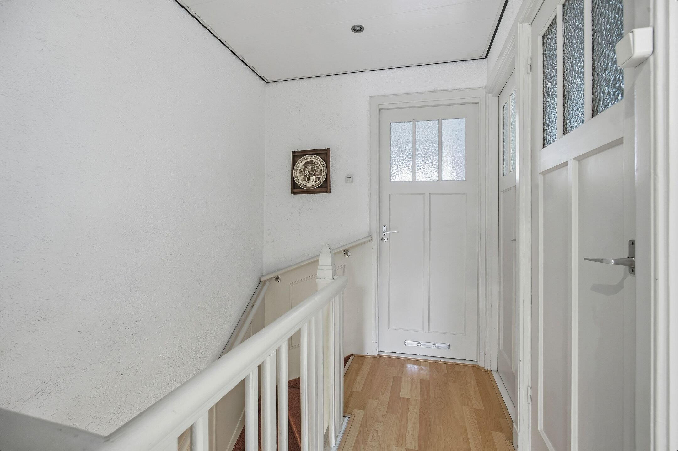 De overloop biedt toegang tot drie slaapkamers, de badkamer en de trapopgang naar de tweede verdieping.