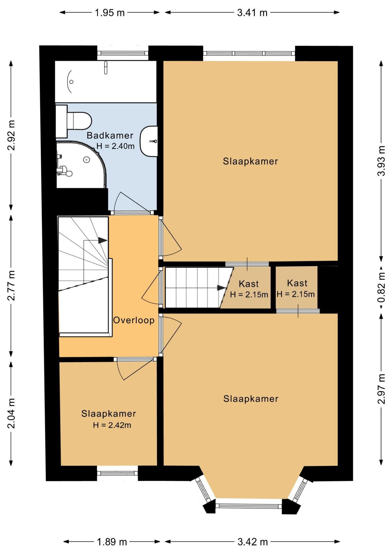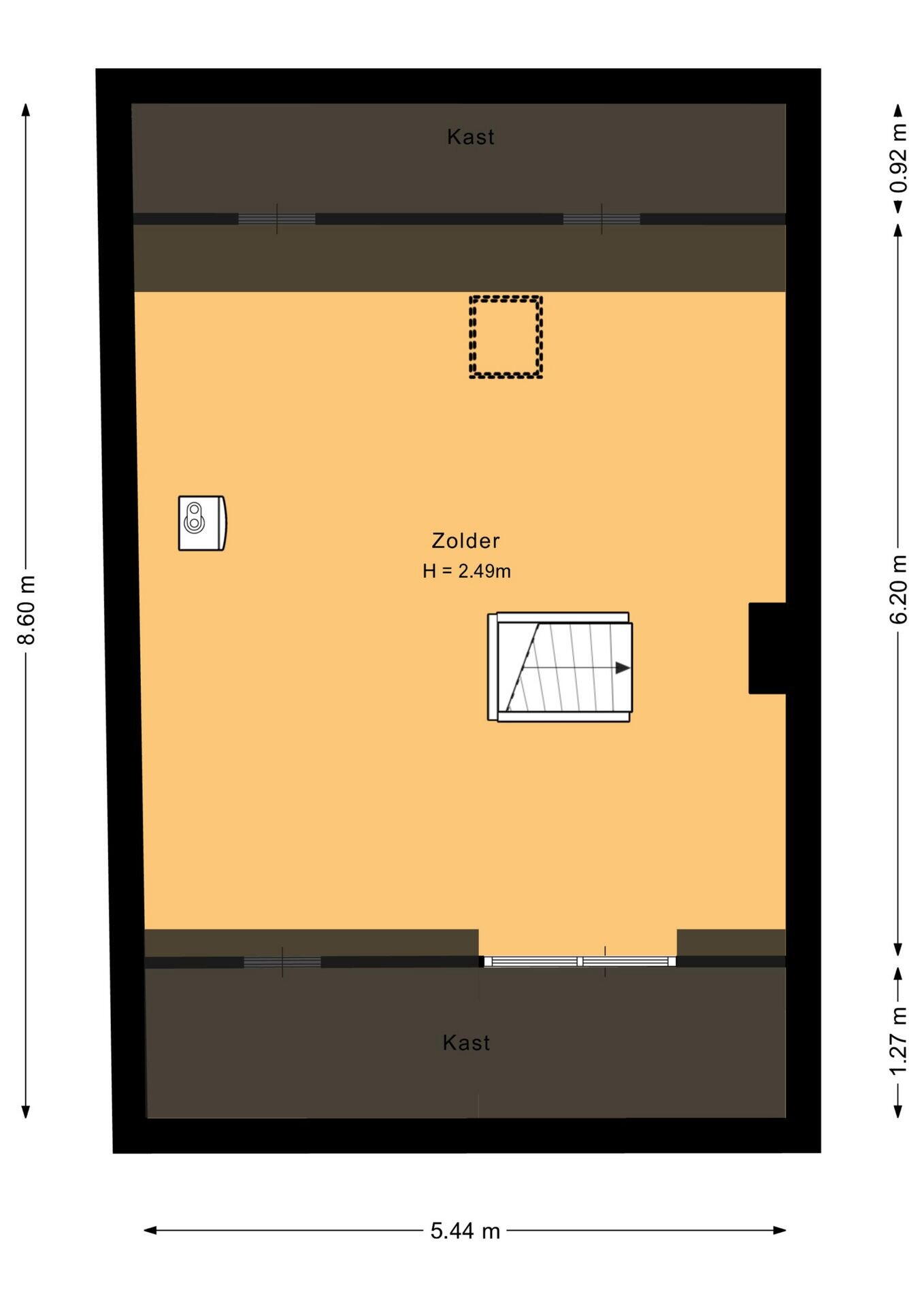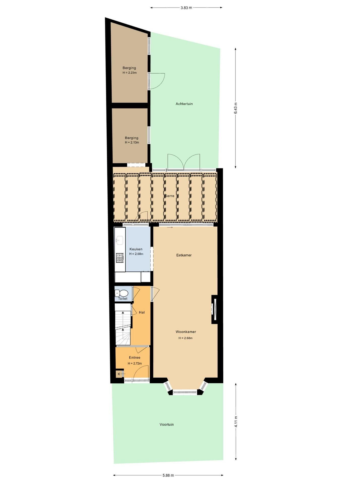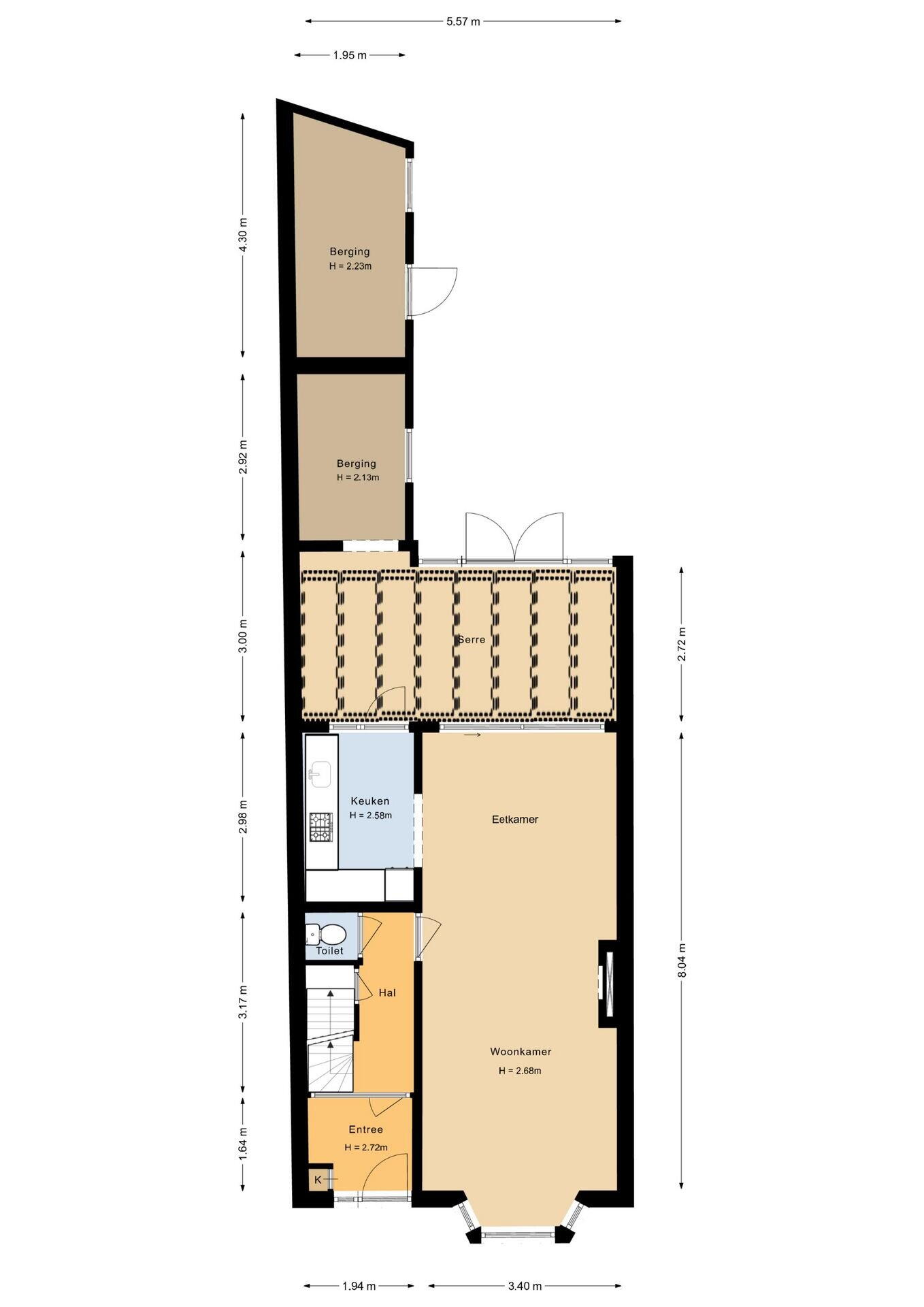- 36 m² (6,43 meter diep en 5,57 meter breed)
