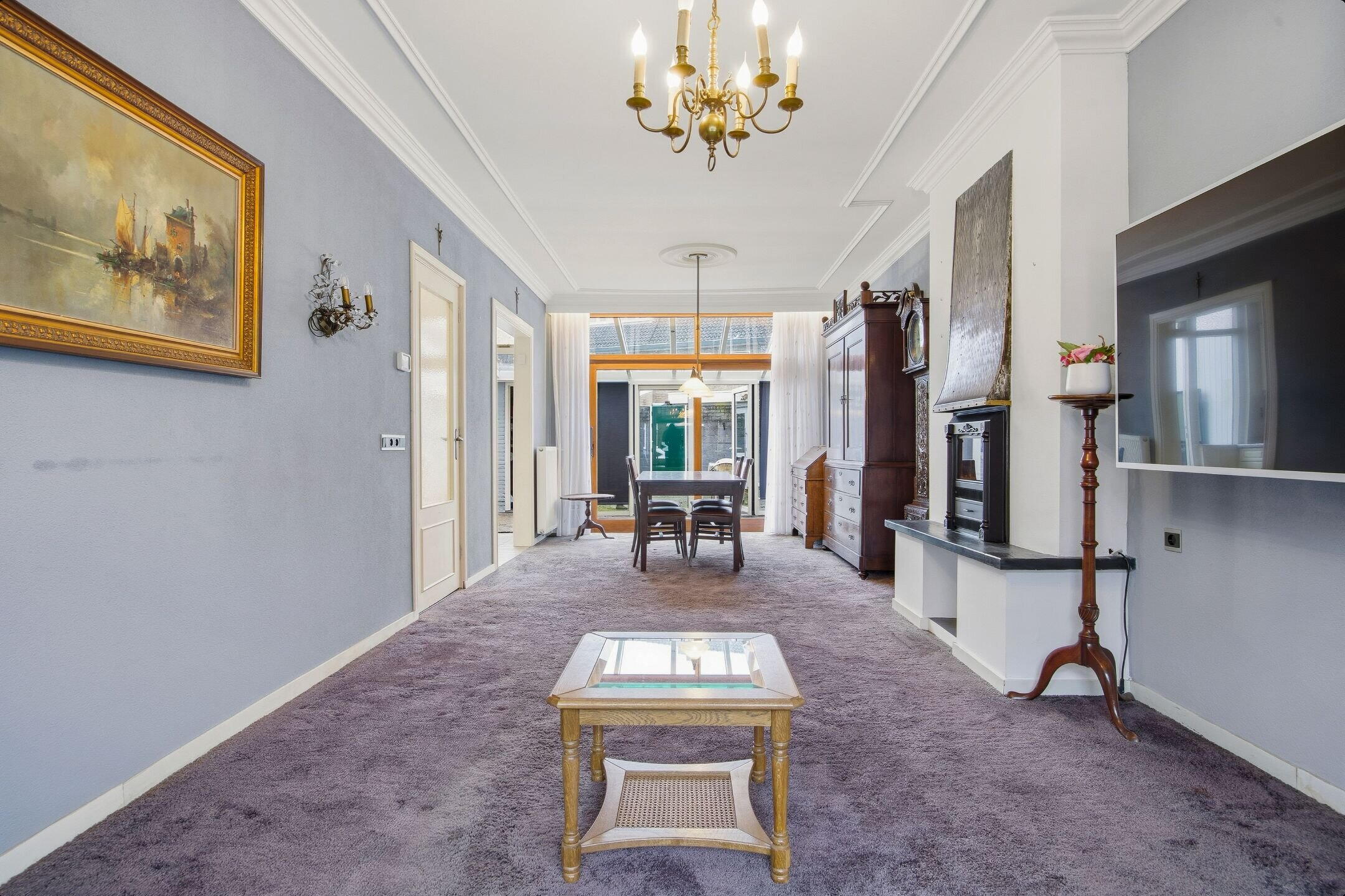 De royale woonkamer is voorzien van een karakteristieke erker aan de voorzijde, een fraai hoog plafond en net afgewerkte wanden en plafonds. Grote raampartijen aan zowel de voor- als achterzijde zorgen de hele dag door voor een prettige lichtinval.